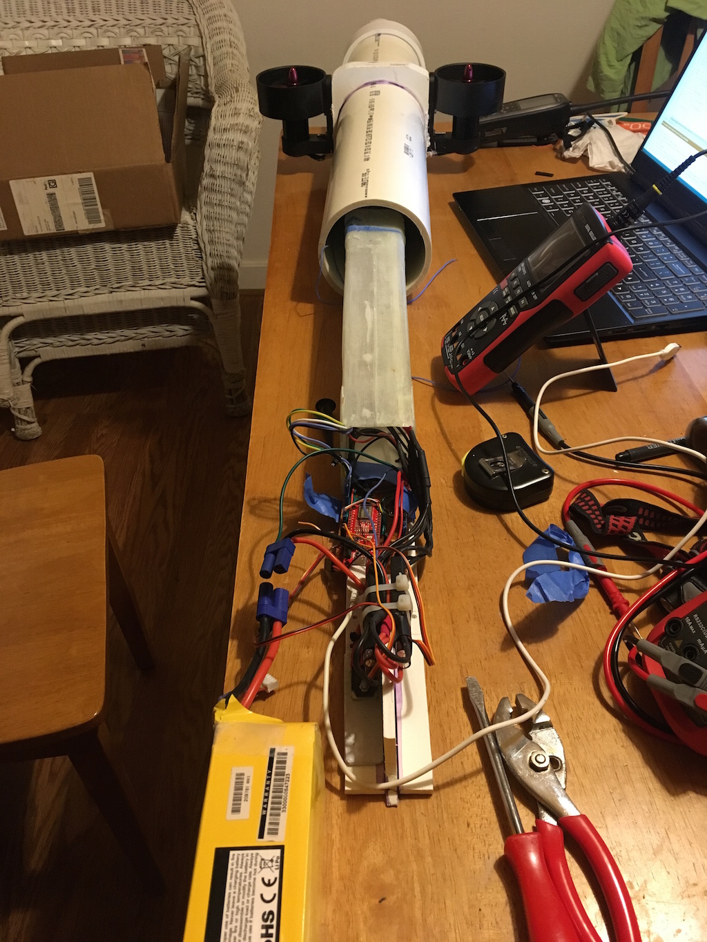 2024-11-26Needed a lot more ballast than expected - I think I'll have to re-think the shape and proportions. The control scheme actually seemed to work OK until I tried to tweak the parameters.